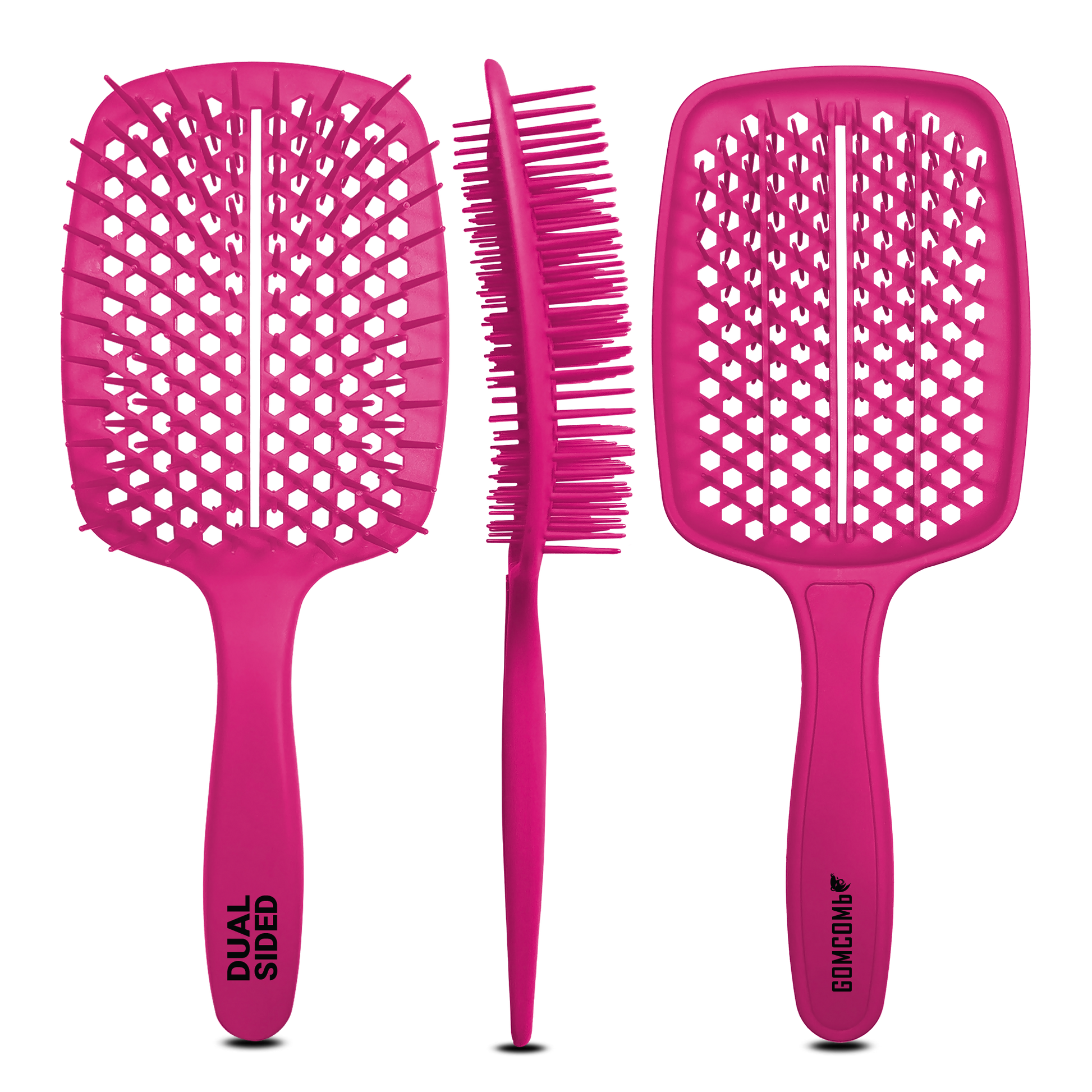 The HAIR BRUSH - GBB001PK - GOMCOMb DUAL SIDED BRUSH - PINK - 6 PACK is the ideal brush for snag-free detangling hair. Ideal for all types of hair.