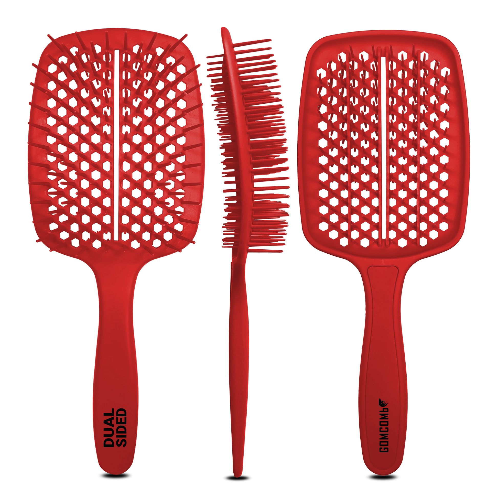 The HAIR BRUSH - GBB001R - GOMCOMb DUAL SIDED BRUSH - RED - 6 PACK is the ideal brush for snag-free detangling hair. Ideal for all types of hair.