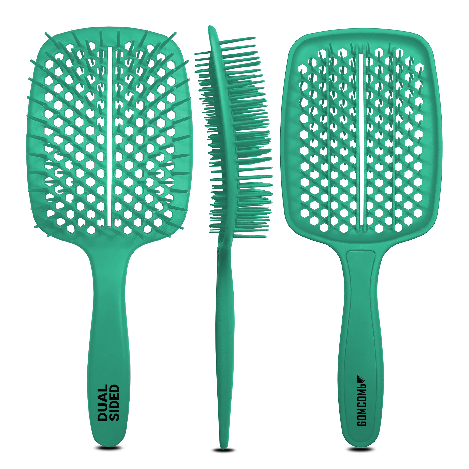 The HAIR BRUSH - GBB001T - GOMCOMb DUAL SIDED BRUSH - TEAL - 6 PACK is the ideal brush for snag-free detangling hair. Ideal for all types of hair.