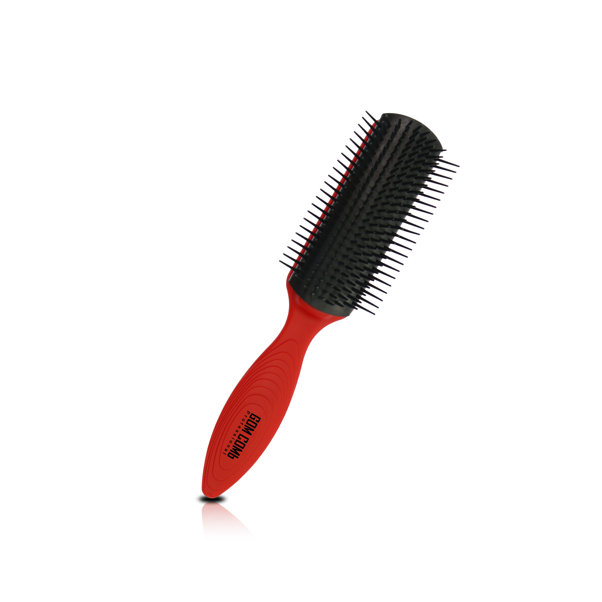 HAIR BRUSH - GBDE01R - GOMBRUSh DETANGLING BRUSH WITH 9 ROWS OF PINS - RED - PACK OF 6