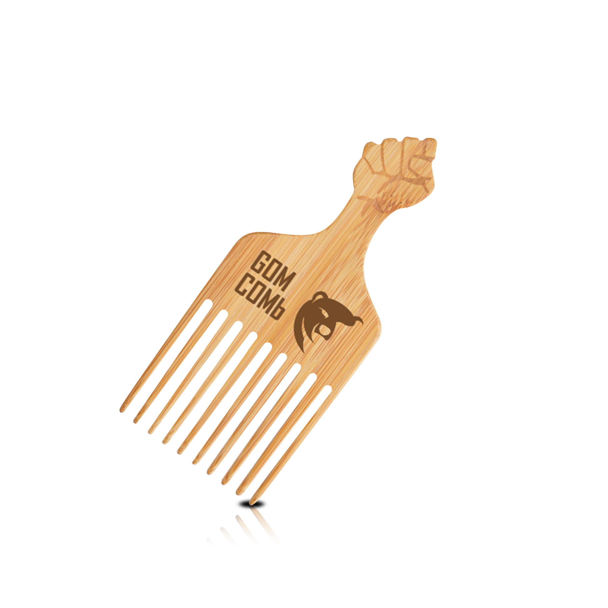 HAIR COMB - GWPICK02 - GOMCOMb NATURAL BAMBOO WOOD PICK COMB - PACK OF 12