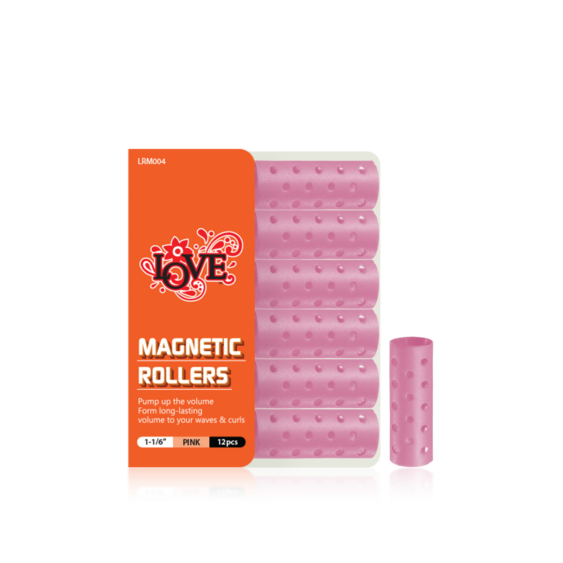 HAIR ROLLER - LRM004 - LOVE MAGNETIC ROLLERS - 1 1/6" - PINK - 12 PCS - PACK OF 12