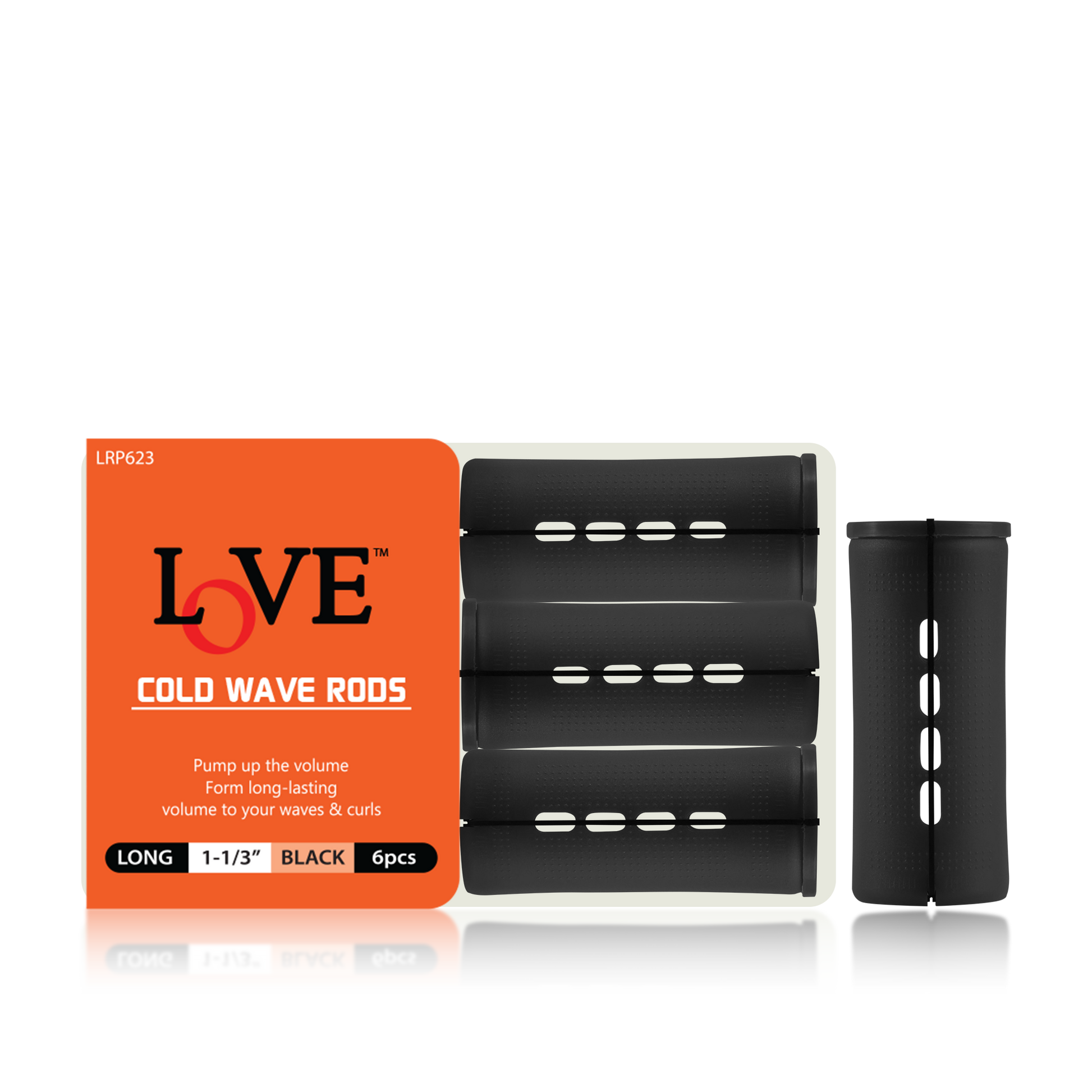 HAIR ROLLER - LRP623 - LOVE COLD WAVE RODS - LONG 1 1/3" - BLACK - 6 PCS - PACK OF 12