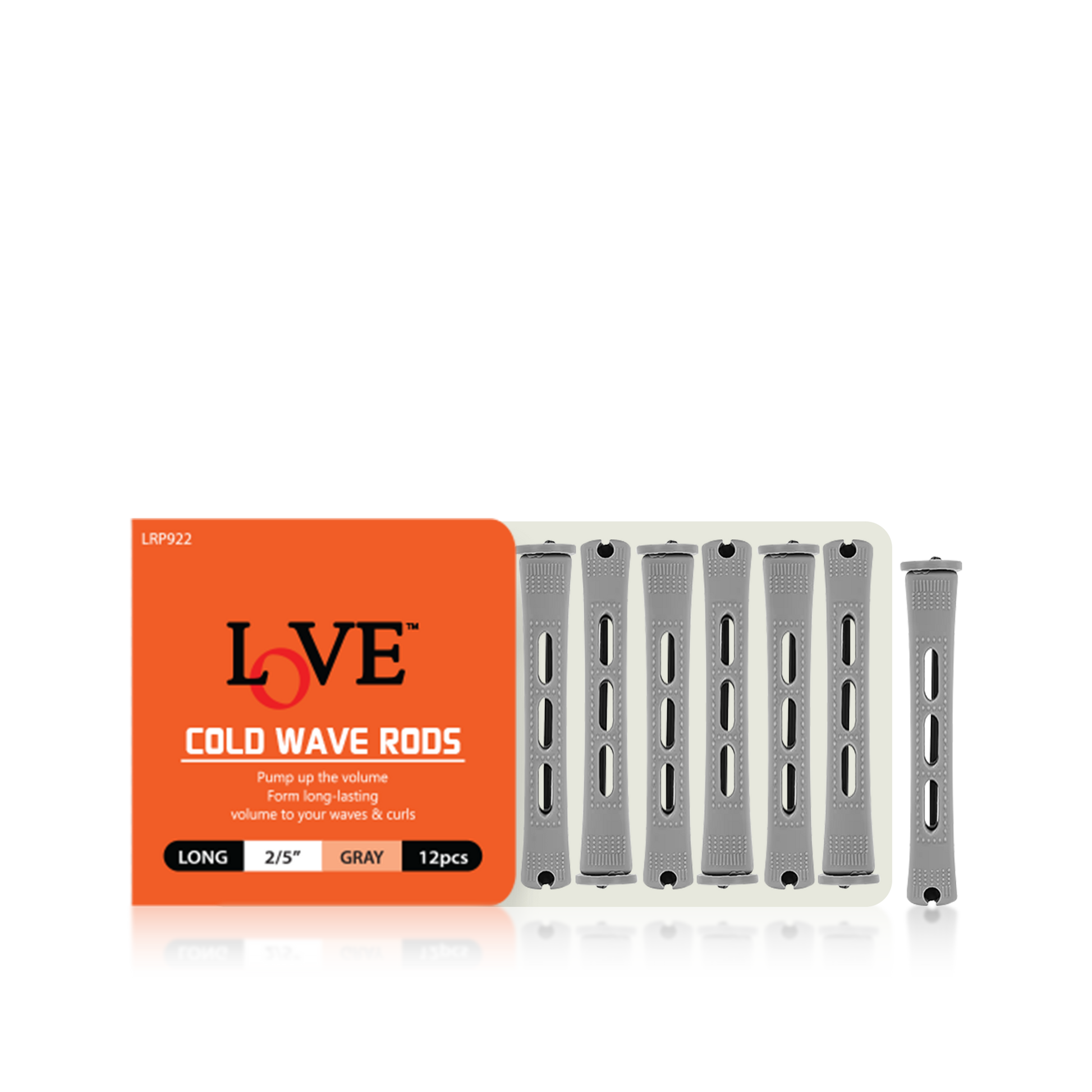 HAIR ROLLER - LRP922 - LOVE COLD WAVE RODS - LONG 2/5" - GRAY - 12 PCS - PACK OF 12