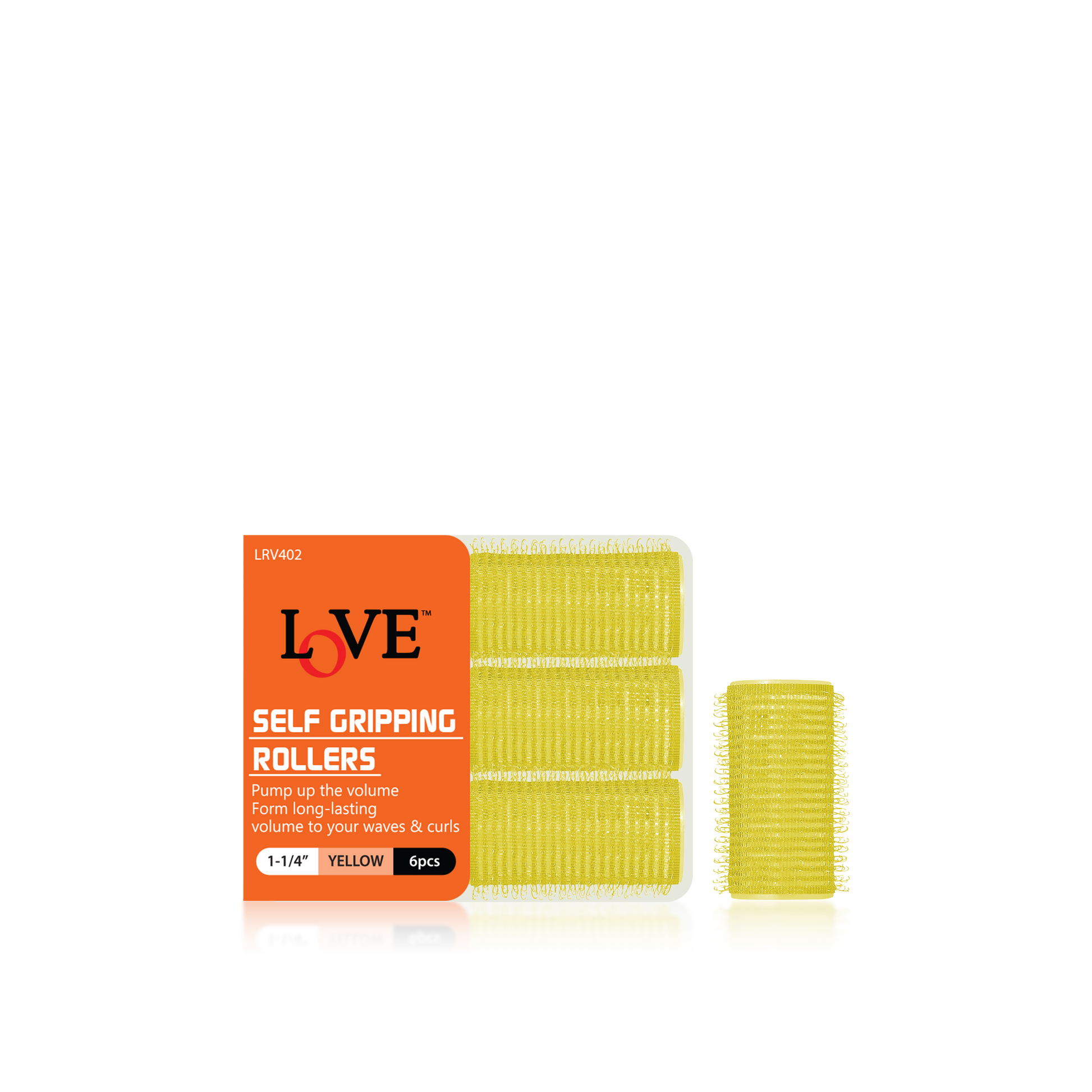 HAIR ROLLER - LRV402 - LOVE SELF GRIPPING ROLLERS - 1 1/4" - YELLOW - 6 PCS - PACK OF 12