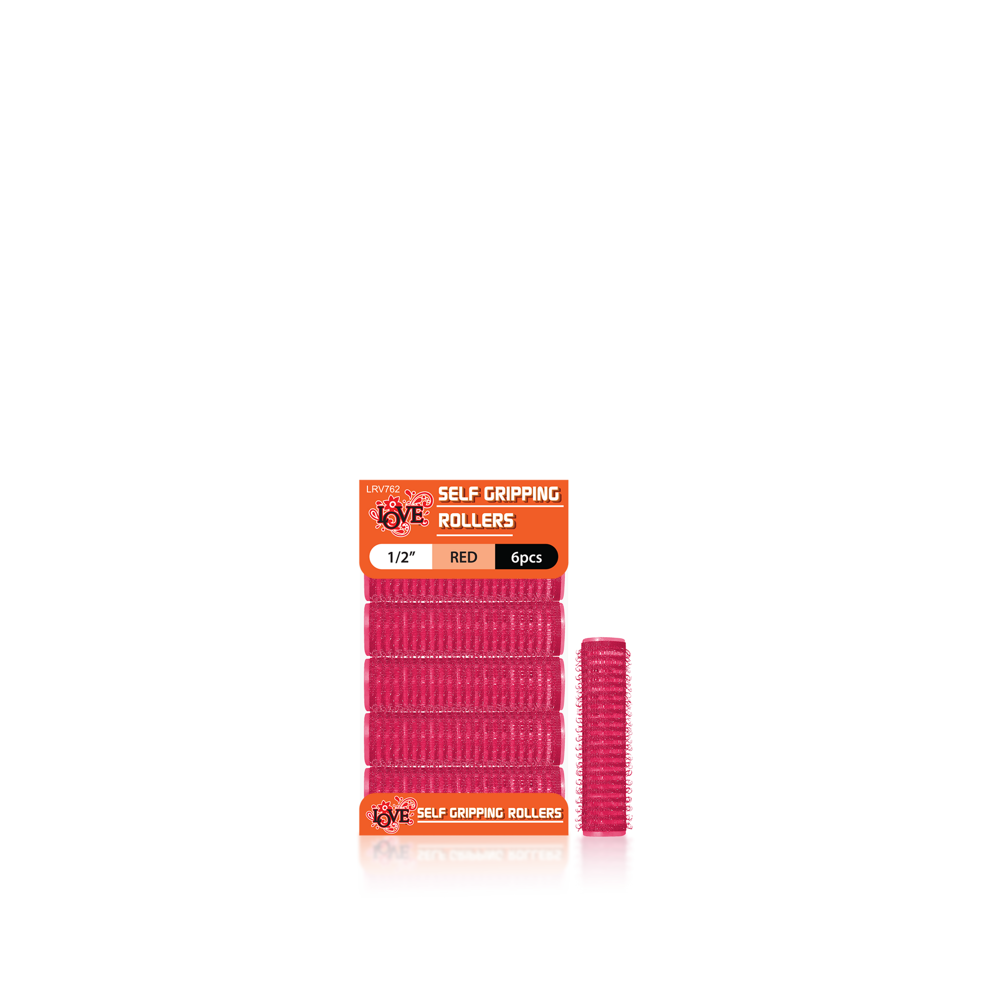 HAIR ROLLER - LRV762 - LOVE SELF GRIPPING ROLLERS - 1/2" - RED - 6 PCS - PACK OF 12