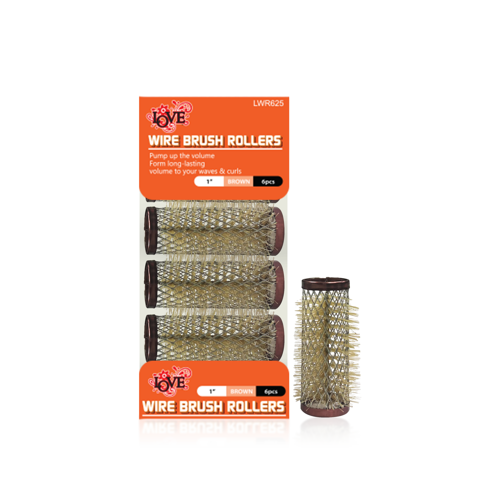HAIR ROLLER - LWR625 - LOVE WIRE BRUSH ROLLERS - 1" - BROWN - 6 PCS - PACK OF 12