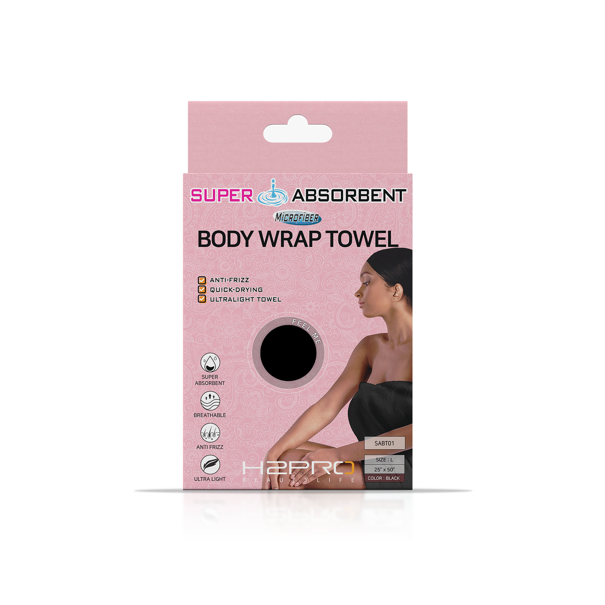 TOWEL - SABT01 - SUPER ABSORBENT MICROFIBER BODY WRAP TOWEL - 25" X 50" - BLACK