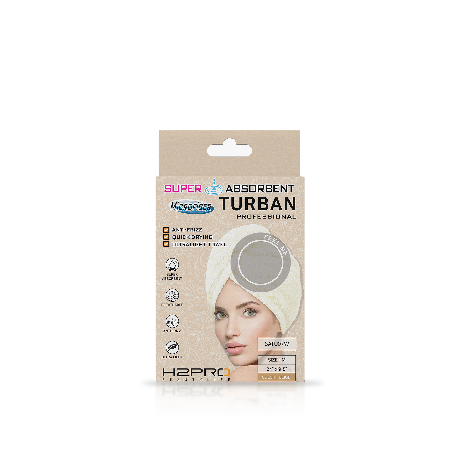 TURBAN - SATU07W - SUPER ABSORBENT MICROFIBER HAIR TURBAN - 24" X 9.5" - BEIGE